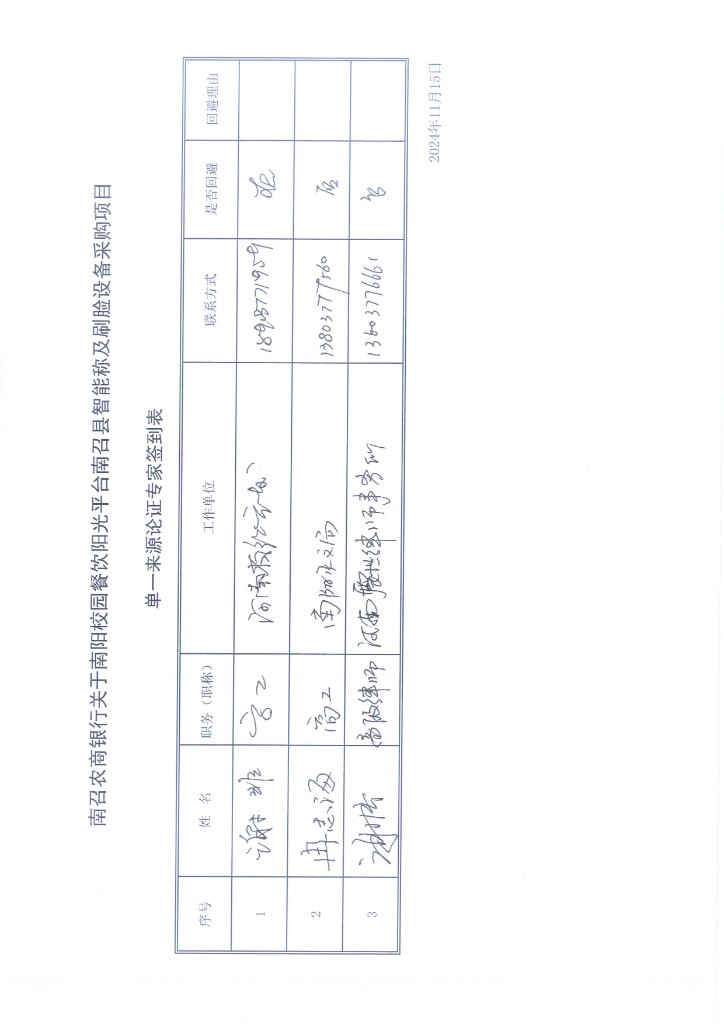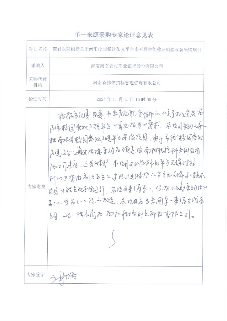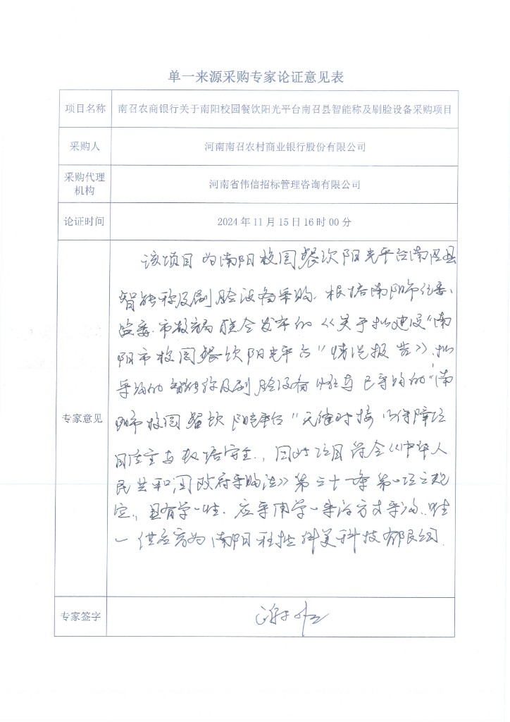 1.项目名称:南召农商银行关于南阳校园餐饮阳光平台南召县智能称及刷脸设备采购项目