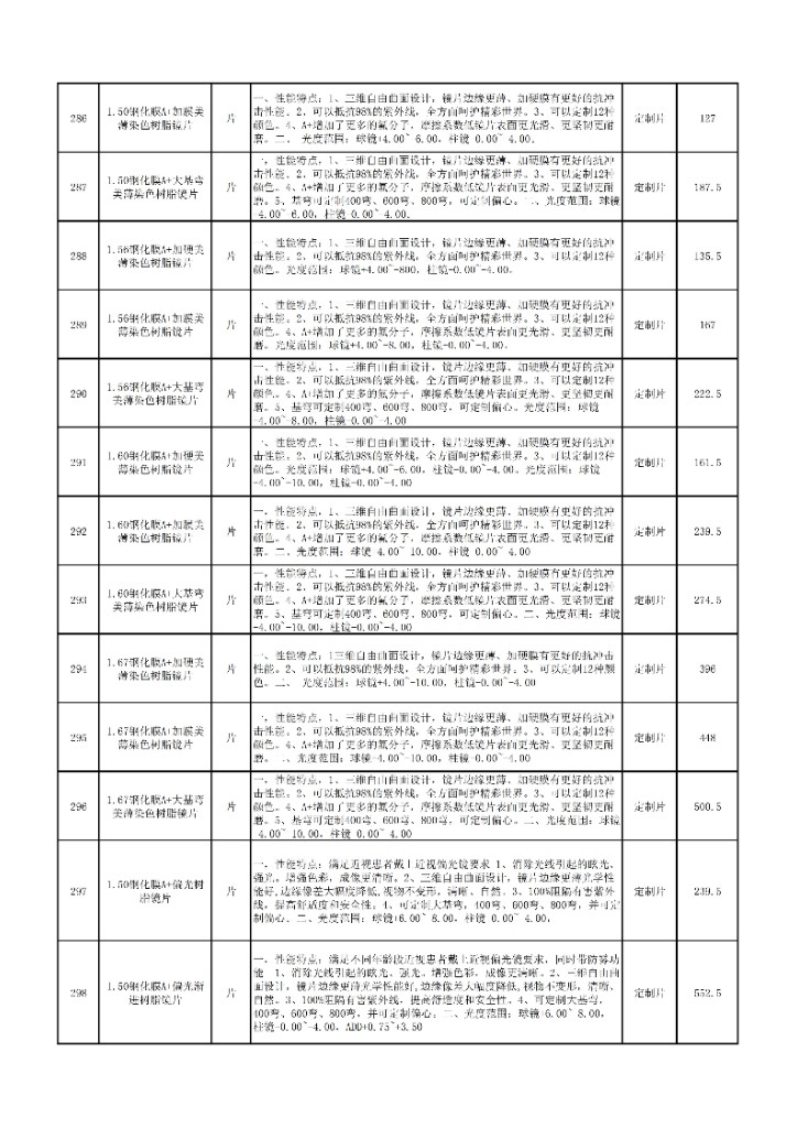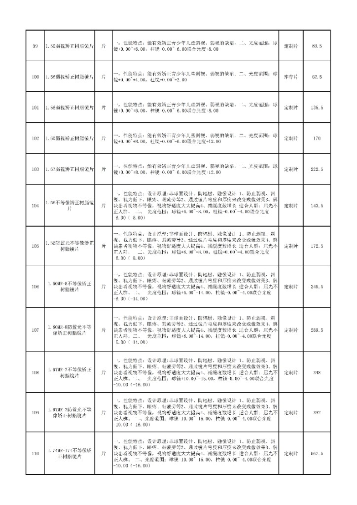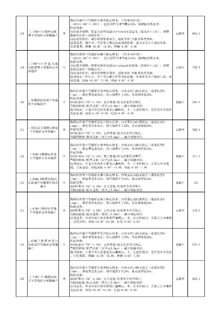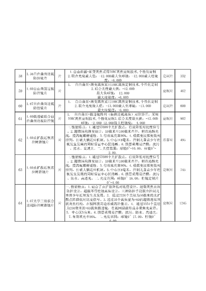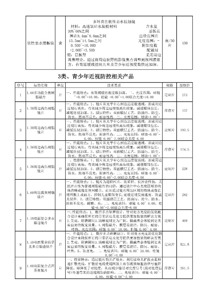 本项目包含1类:眼科镜片系列;2类:软性亲水接触镜;3类:青少年近视防控类;